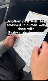 Thank you, Saira, I really appreciate you taking me on and teaching me in Bredbury. You've gave me so much confidence in my driving and you have helped me so much. I can't really stop thanking you a lot. I'm so happy I passed. You've always had your trust in me and I will always support you and always remember you. It's a shame I won't do lessons with you anymore sadly but I'll always keep you in my prayers and your family. I'll see you around.